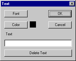 | Text: | Type in text, which will be displayed, using the chosen font and color. Pressing OK with an empty string is equivalent to Delete |