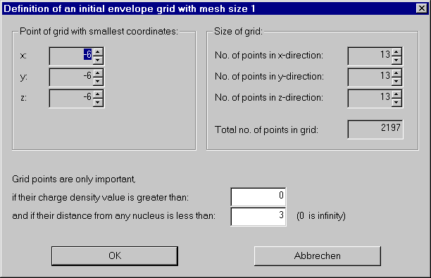 We have various possibilities to save some work, but for now we take the defaults and compute a grid covering the whole molecule.