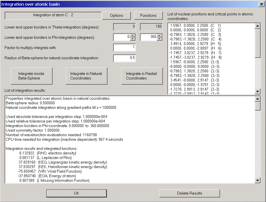 By clicking "Integrate inside Beta-sphere" only the first part is performed, "Integrate in natural coordinates" performs both parts if necessary. We choose the latter.