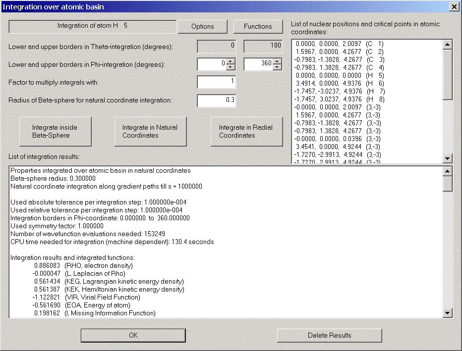 The integration process consists of two parts: First, integration is done in radial coordinates in a sphere around the nucleus which should totally be inside the atomic basin. The default radius of the sphere is 0.5. This is usually ok, only for Hydrogen atoms the sphere sometimes has to be smaller. We change the radius to 0.3.