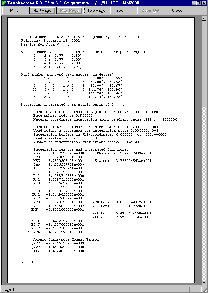 In order to give you a feeling how to use AIM2000, we will explain the main features of the program by presenting an example. We decided for Tetrahedrane since it is a simple molecule with 14 molecular orbitals. The 4 carbon atoms form a tetrahedron and we expect to find all four kinds of critical points in the charge density.