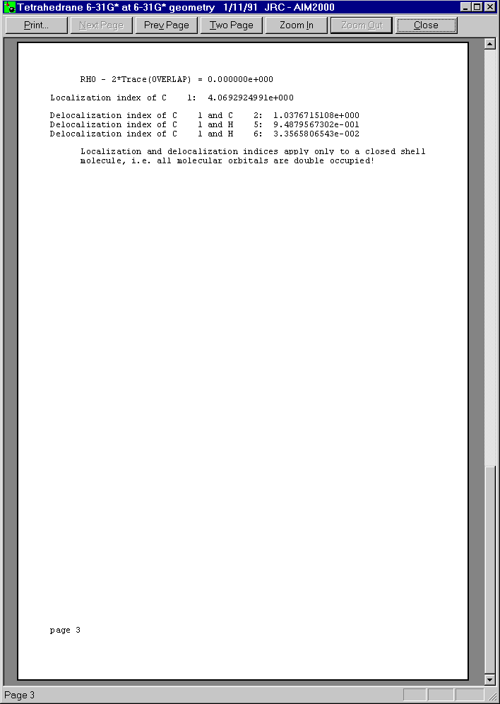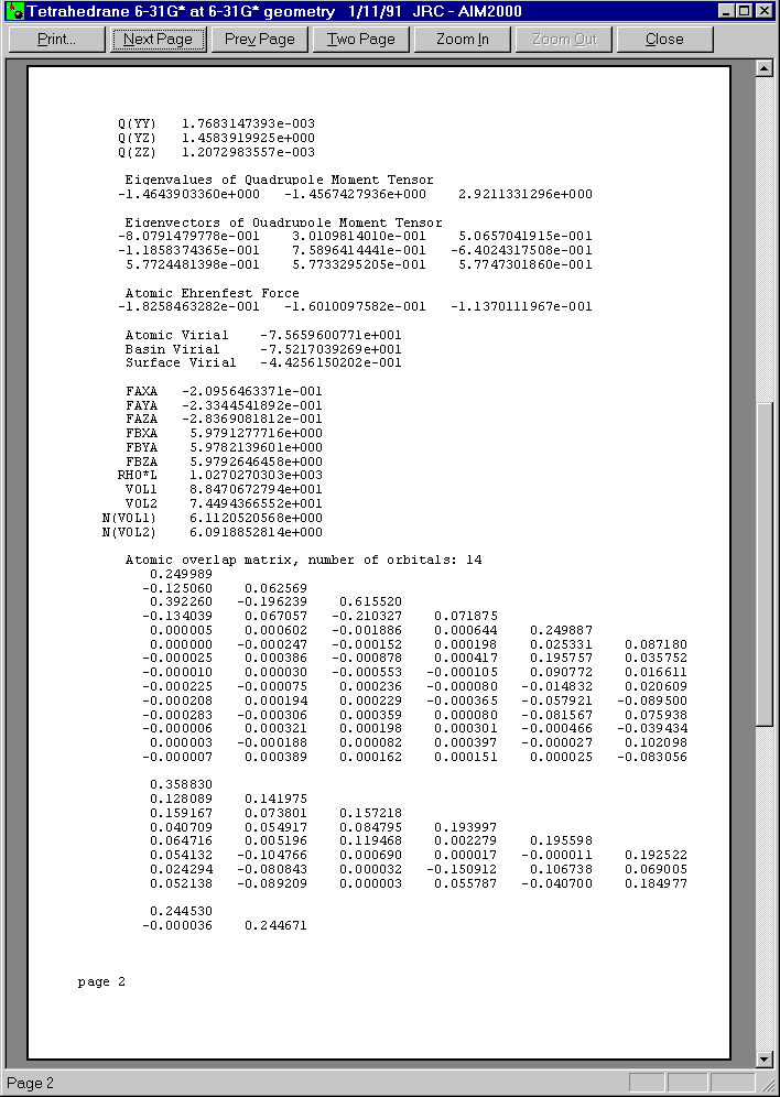 Note the value for the Laplacian of Rho. It should be zero and gives you a feeling for the accuracy of the integration.