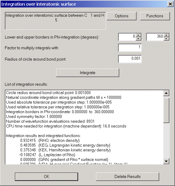 Similar to the basin integration we can calculate properties of this interatomic surface by integrating various functions.